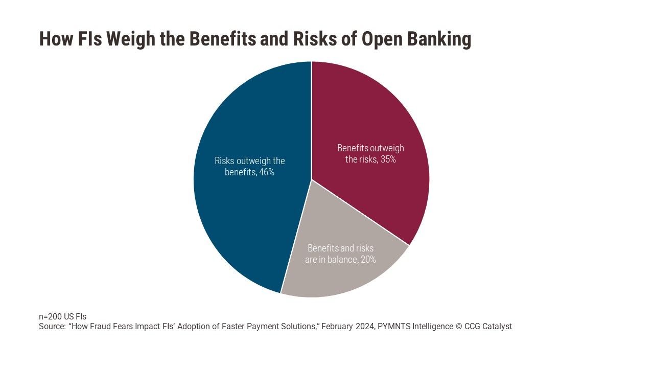 Forty-six percent of US financial institutions (FIs) say the risks of open banking outweigh its benefits, according to a recent study by PYMNTS Intelligence, and 20% say the benefits and risks are in balance. That leaves just over a third of FIs who see value in open banking that outweighs the risk, and those that are enthusiastic about it may be even fewer. In CCG Catalyst’s Banking Stability and Innovation Study 2023, only 17% of US FIs said they were committed to providing open data access to third parties.